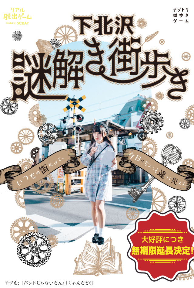 下北沢の街全体を歩きながら進める街歩き型の周遊謎で、キットを購入して遊ぶ形式です。進行中はWEB上の解答入力欄とヒントページを使うため、紙だけでは完結しません。公式想定は2時間ほどですが、レビューでは行ったり来たりしやすく、休憩や街歩き込みで時間が伸びやすい傾向があります。時間制限はなく複数日プレイも可能です。